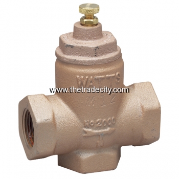Series 2000-M5, 2000S-M5 Hydronic, Two-Way, Universal Flow Check Valves are for use in commercial and residential hydronic heating systems to provide positive shutoff when circulator is not running, preventing flow of water to radiation units. They are easily opened for gravity circulation. Model 2000-M5 combines angle and horizontal checks and consists of an iron body construction with female threaded connections, bronze seat, and brass center guide. Model 2000S-M5 consists of a straight pattern design with a bronze body construction and solder connections, bronze seat, and brass center guide. Sizes 3/4 to 1 1/4 in. (20 to 32mm) Maximum Pressure: 50psi (344.8kPa); Sizes 1 1/2 to 3 in. (40 to 80mm) - Maximum Pressure: 125psi (8.6 bar).